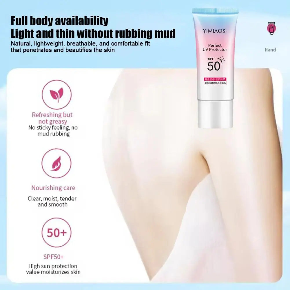 1. Clear quality: This light and transparent spf50+ sunscreen lotion can be quickly absorbed, moisturized lightly, with delicate texture, moisturized smoothly, light and non-greasy, easy to apply, and can provide excellent sunscreen protection for your skin.